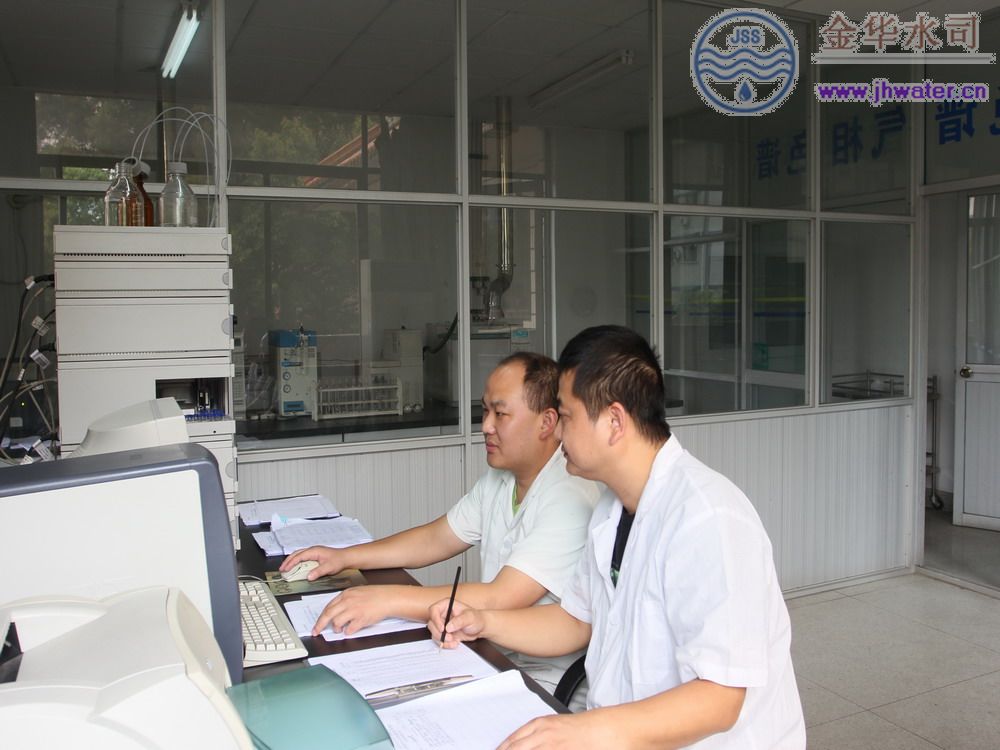 时值炎夏,市民用水量增加。为让市民喝上安全优质自来水,金华市自来水公司要求加强监测,认真做好水质化验工作,确保自来水在生产、供应过程的水质。图为公司水质处员工在聚精会神化验水质,严把水质关。(周明 文/摄)