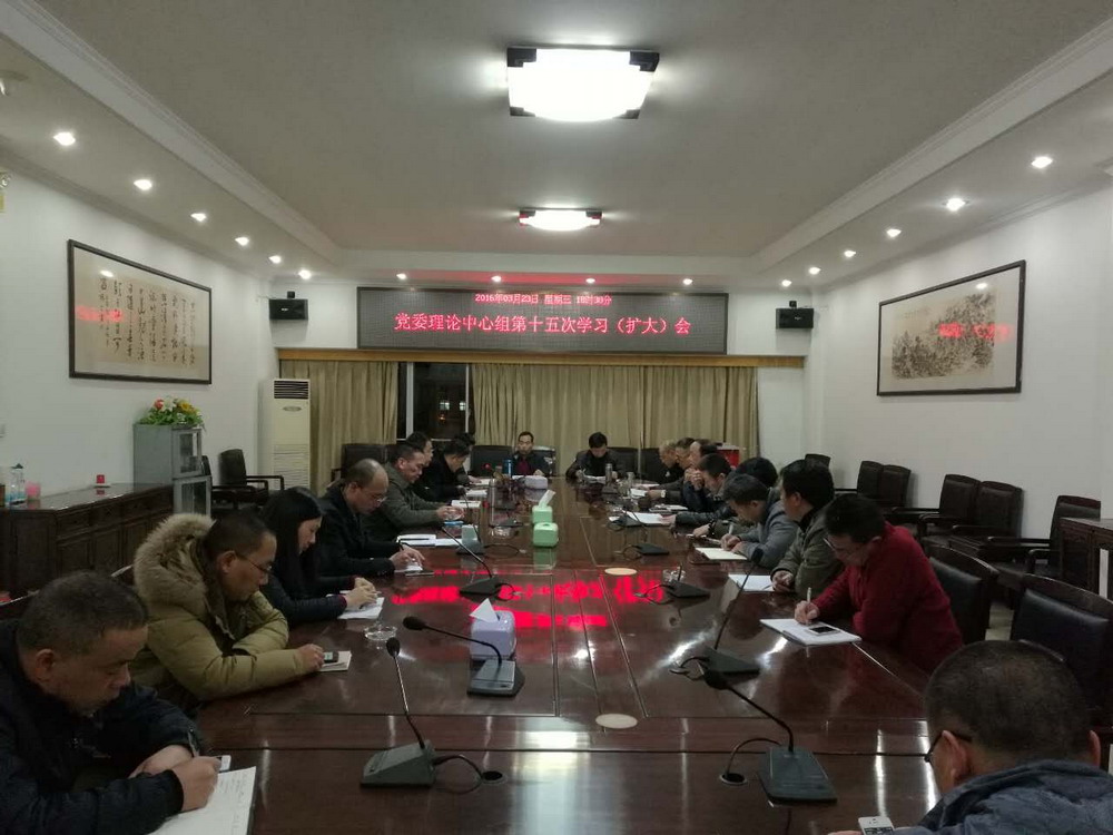 3月23日晚上,金水司召开党委理论中心组第十五次学习(扩大)会,公司党委书记吴建诚主持会议并讲话。在会上,周德强副总经理传达了市建设局“走前列 促共建”作风建设大会精神,杜乐双总经理以“翻篇归零再出发,承上启下补短板,画好供排同心圆,共建金华水务篇”为主题对公司2016年重要工作进行了再部署再落实,要求各部门从发扬铁军精神,发扬奉献担当精神,科技化管理、改革创新,提高工作效率,加强督考五个方面抓好全年工作任务。