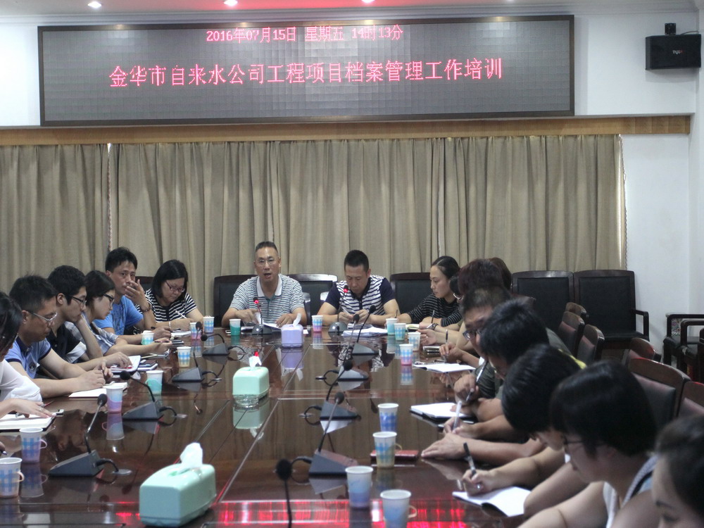 来自公司各部门的专兼职档案员、金华市第二水厂及配套管网工程和金华市秋滨污水处理厂三期工程的施工、监理等单位的档案员积极参加了培训。公司副总经理邓文斌在培训前作动员讲话,培训课由金华市档案局朱雪民老师主讲。