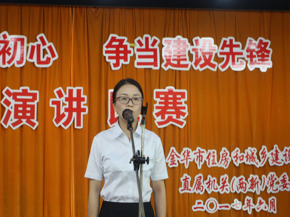 为庆祝建党96周年,6月30日下午,金华市建设局直属机关(两新)党委在金华水司五楼会议室举办“不忘初心 争当建设先锋”演讲比赛。来自建设系统的16位选手参加比赛。局直属机关党委书记徐春来,局直属机关党委专职副书记、纪委书记吴箐晏,纪委副书记徐震等局直属机关党委委员到会观摩。
