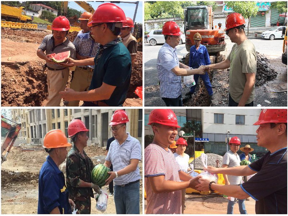 入伏以来,持续高温,热浪袭人,“烤验”着公司户外作业人员。艰苦作业环境下确保职工身体健康是保安全、保供水的基础,7月20日,公司组织人员分组前往各施工现场慰问一线作业人员,为职工送关心、送清凉。