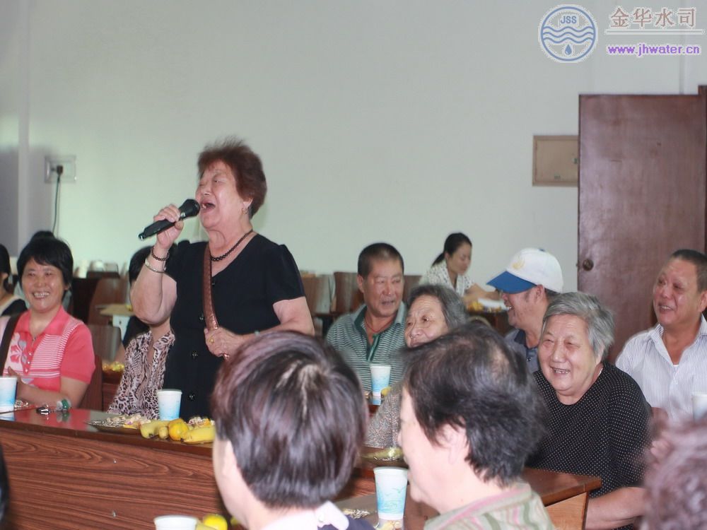 老同志们听了吴总通报的情况后,对公司的工作感到十分满意。老职工钱水莲为表达喜悦、激动的心情,拿起话筒为大家连唱了两首歌曲,博得了大家的阵阵掌声。会场上,欢笑声、喝彩声响成一片,热闹非凡。大家纷纷称赞公司的发展令他们感到欣慰,并希望全体干部职工在公司领导班子的领导下,戒骄戒躁,奋勇向前,促进公司供排水事业又好又快的发展!(周明 文/摄)