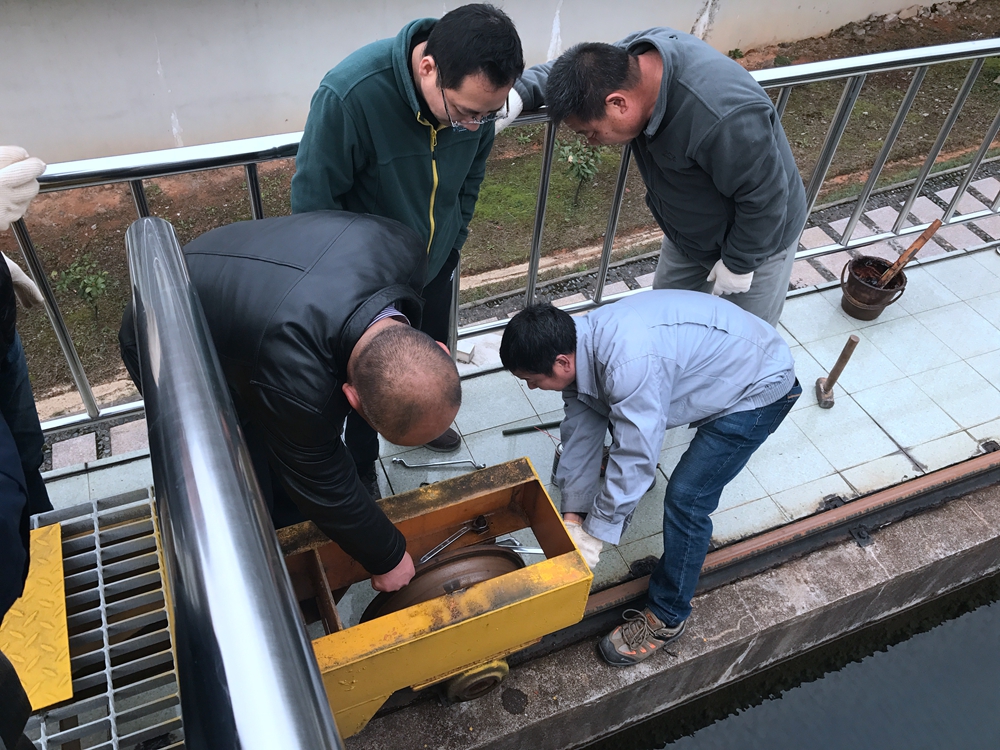 3月6日,厂家技术人员到公司金沙湾水厂检测目前正在使用的四台吸泥行车,指导水厂维修人员如何修理,并针对平时设备保养、维修等问题给出合理答复意见。通过检测,解决了吸泥行车在行驶过程中发生跑偏、有异响等问题。