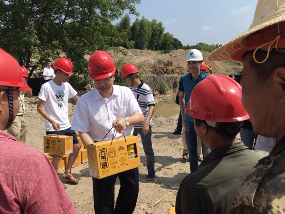 8月7日上午,市委副书记、市长尹学群,市委常委、组织部长余杰,人大常委会副主任张荣贵,副市长陶叶萍,政协副主席傅利常一行来到梅溪流域综合治理工程芦家闸工地,看望慰问高温下坚守岗位的一线工人,了解项目进展情况和存在困难,为冒着酷暑工作的城市建设者送上慰问品。市水务集团筹建组组长陈汝森等陪同慰问。